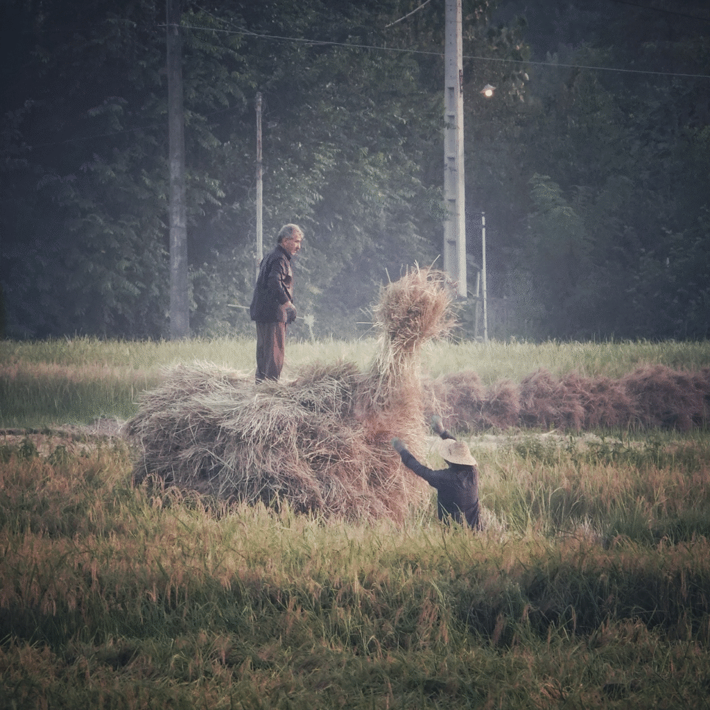 در میانهی آتشبار ماه مرداد کم کم جادهها پر از کشاورزان و کارگرانی است که سرگرم برداشت محصولند. جلوی کارخانههای برنجکوبی گونیهای نارنجی لبریز صف میکشند و یک سال کشاورزی به سرانجام میرسد.